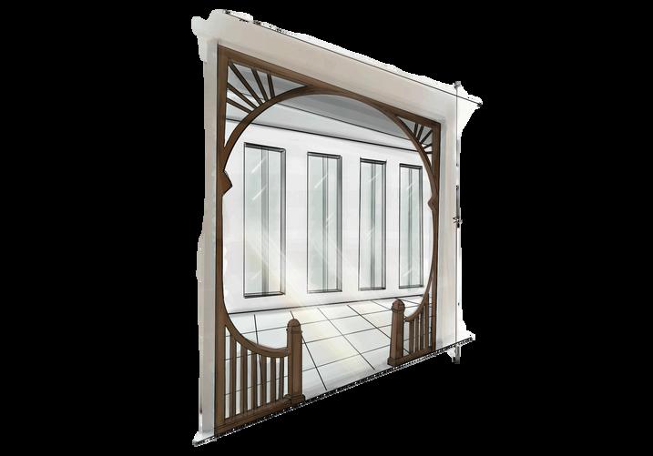 Thesunroomfeaturesexpansivewindowsthatinvite naturallight,withawoodornamentalarchmarking theentrancethataddswarmthandelegance,while lushindoorplantsenhancetheconnectiontonature Theseelementscollectivelyreflectthehotel’snatural surroundings,fosteringasereneexperience
