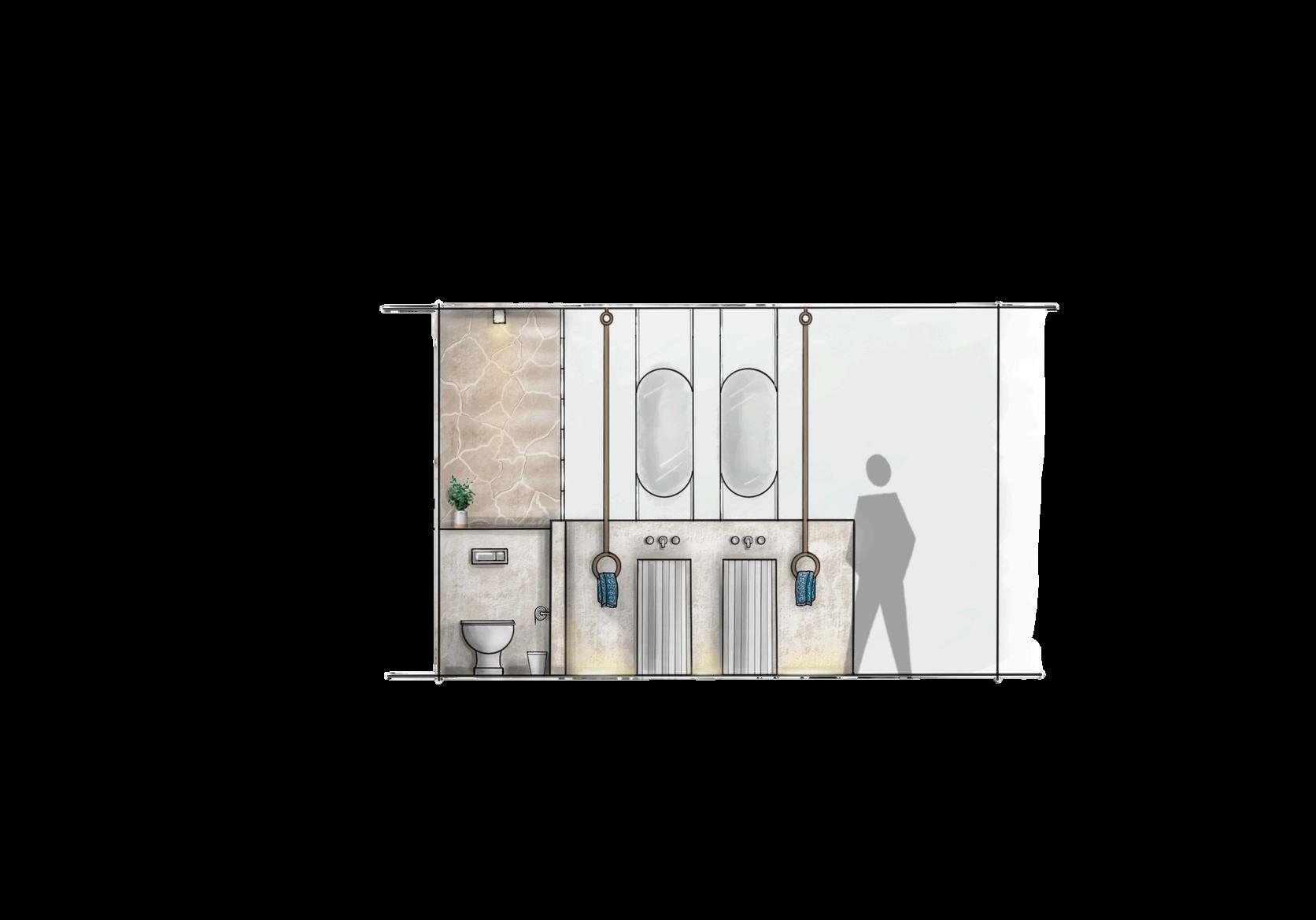 The suite’s layout embodies the hug concept through its warmand invitingflow An open-conceptplan ensures accessibility and seamlesscirculation. The design wraps around occupants, offering opennessandconnection, just like the reassuring embrace of a hug.