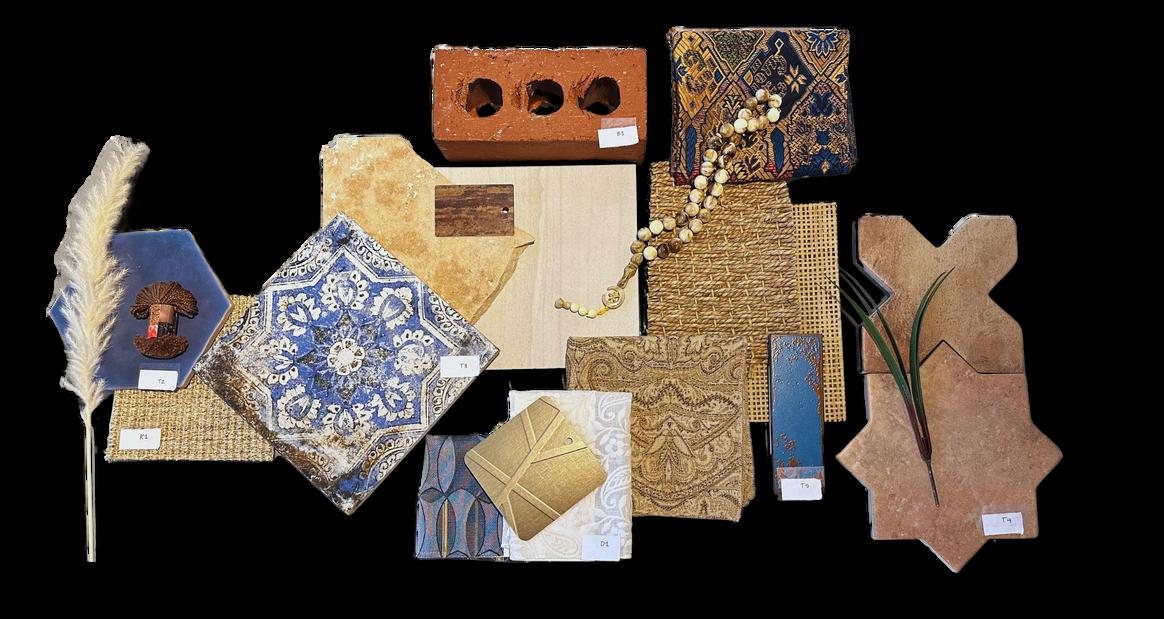 Inadditiontoculturallyinspiredmaterials likestone,reed inlightingfixtures,andbrick walls,theuseofvintagedecorpieces throughout addsatouchthatfurthersthe goalofculturalincorporationinthedesign.