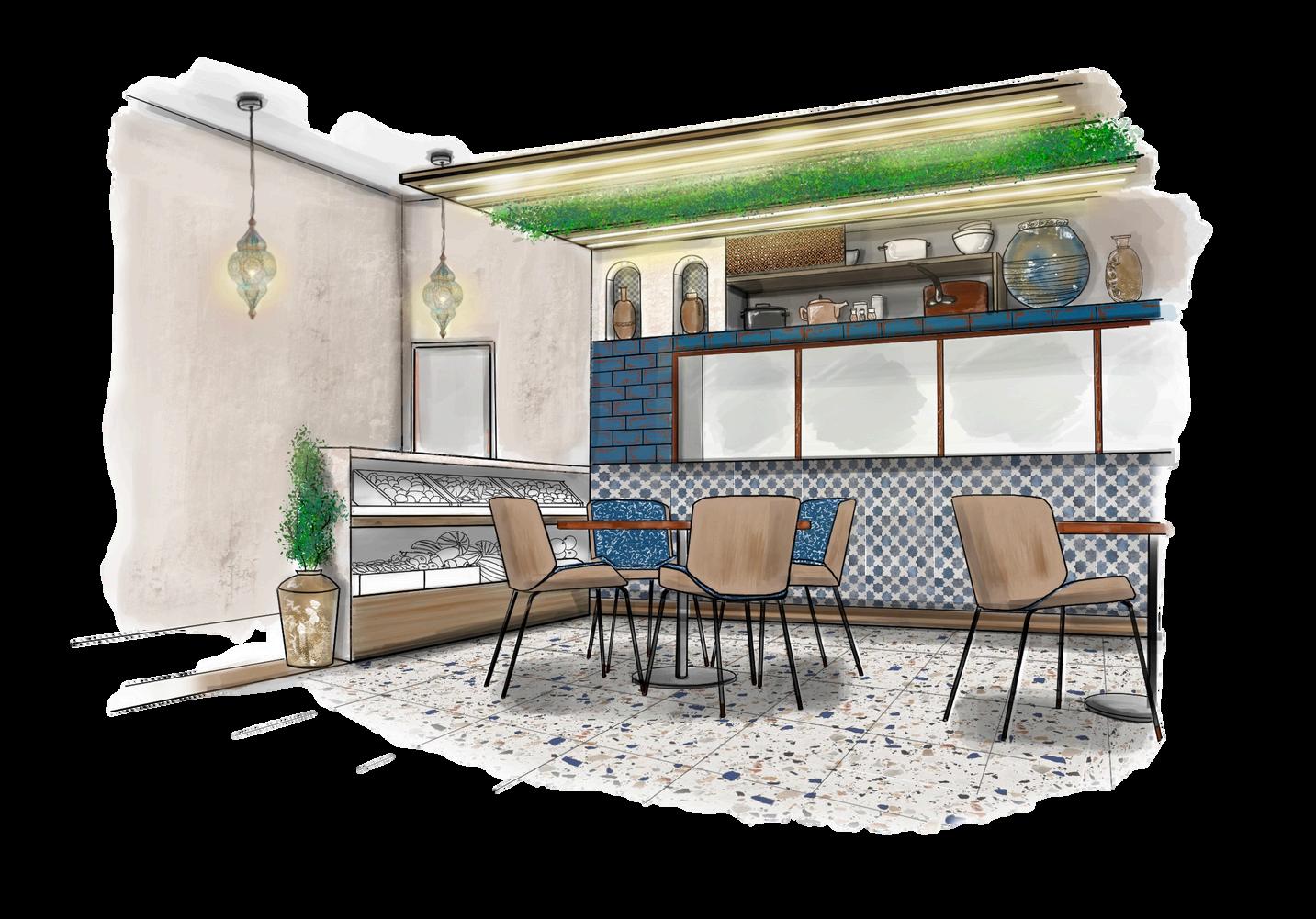 The restaurants design captures the rich heritage and cultural essence of Iraq by incorporating traditional architectural features like intricate woodwork and tiles inspired by Islamic art. Materials such as brick and stone are used throughout to create a warm, authentic atmosphere that connects to Iraqi history. Ambient lighting and thoughtfully arranged seating add to the cozy, communal feel, reminiscent of an Iraqi home