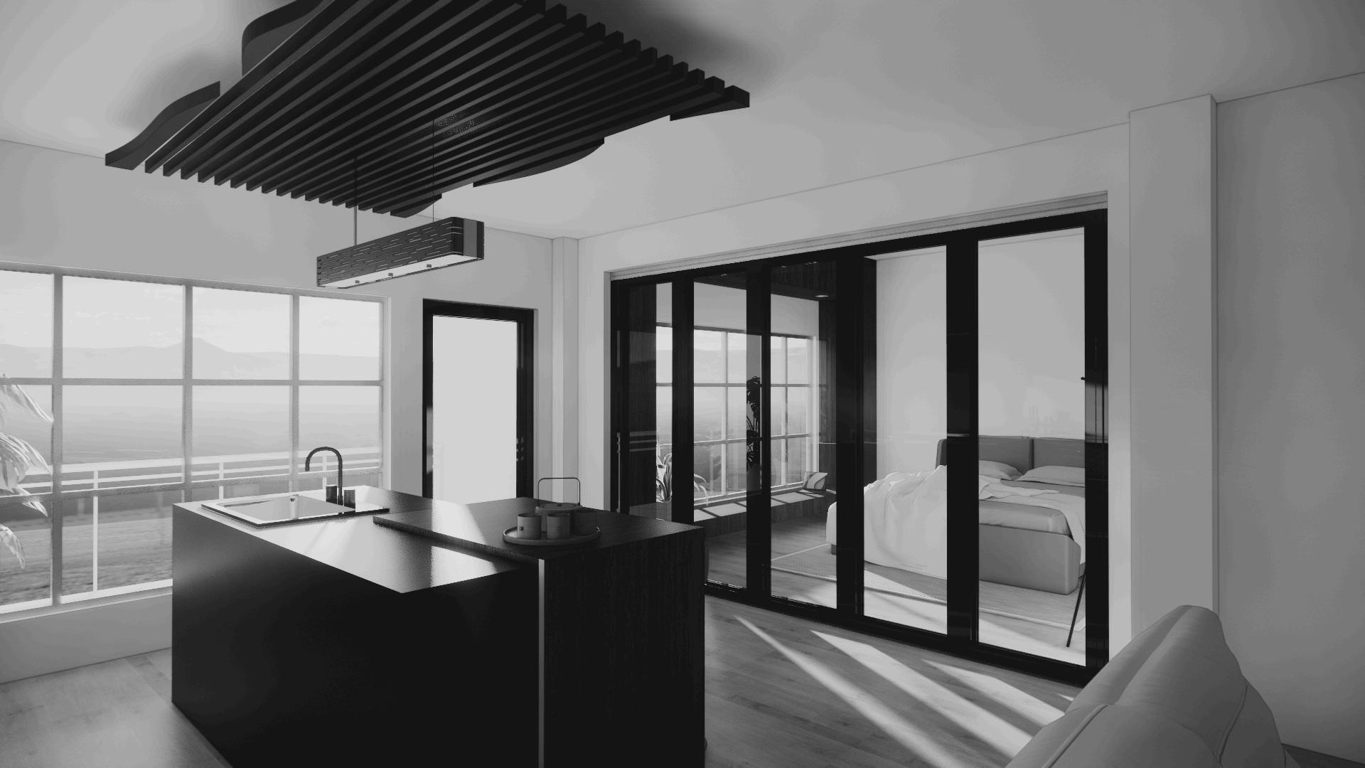 Design a warm, elegant and functional space that balances texture, lighting, and materials. The aesthetic embraces modern minimalism, creating depth and coziness through dark tones, ambient lighting, and natural elements. Maintain an open-plan concept while defining each area through strategic furniture placement Customized design to meet client needs, incorporating ceiling details and accent lighting to enhance depth The goal is to achieve a sophisticated yet inviting atmosphere that seamlessly blends aesthetics with functionality.