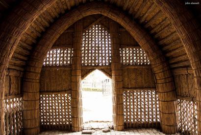 The idea is toconnectlocalsandtourists by promoting cultural exchange and communication It is inspired by ancient construction techniques of the reed houses; Reed sticks are woven into two columns, forming a distinctive arch that serves as the framework for the entire structure of the ancient houses