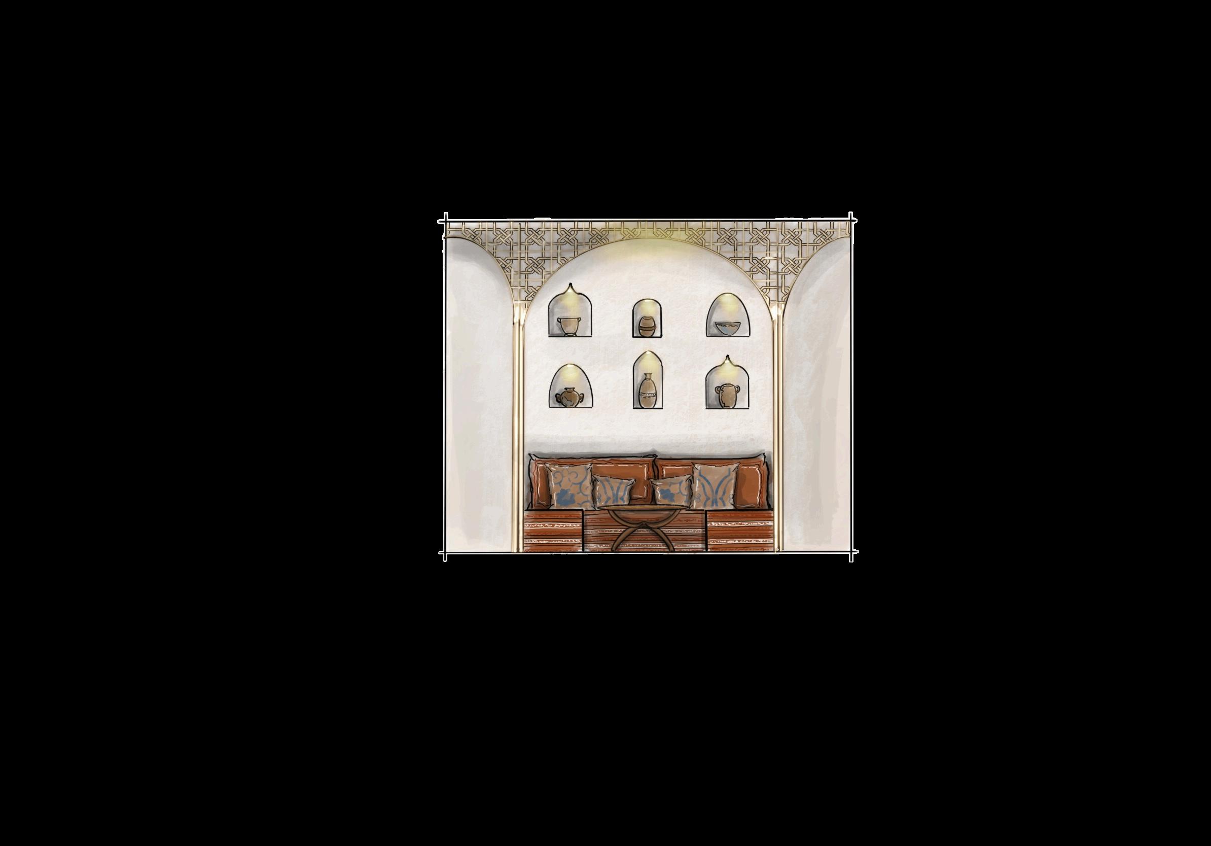 mentalcarvingto the arches as a frame, which was inspired by the mosque doors. Also covered the columns with the same ornaments to match the arches (incorporating culture).