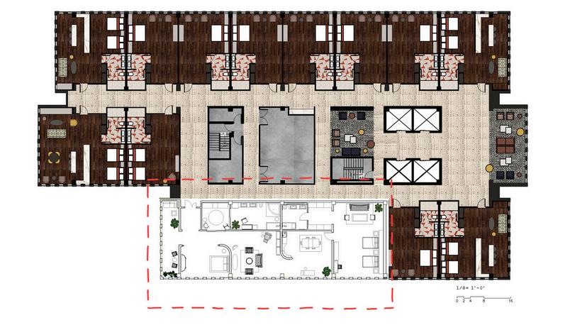 The Canterbury Court design will include two activity areas. One will represent the brain and will include yoga, a library and a lounge area. The second space will represent the heart and it will include all the fun activities like Movie theater and gaming