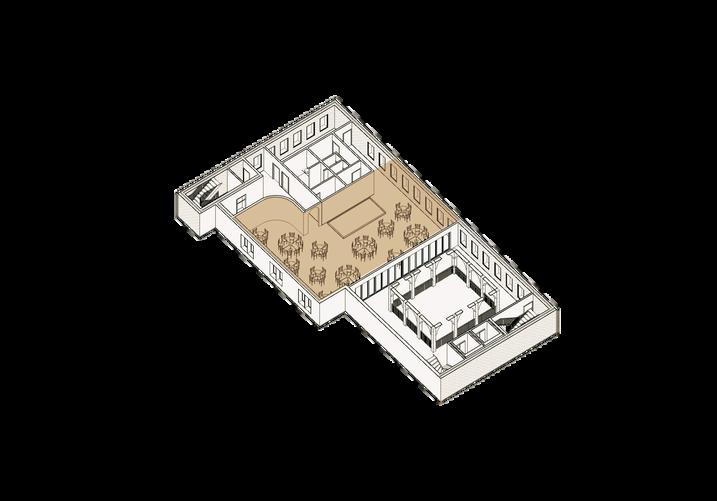 Option B - The space serves as a publ c event venue offering various activ t es such as parties plays concerts and more This option provides an open area that can function as a unified space for different events