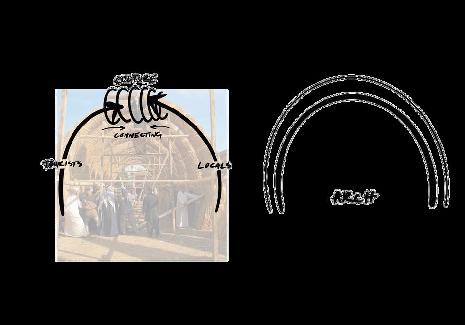 By connecting locals and tourists through culture, this project promotes cultural exchange and communication inspired by ancient houses' construction Reed sticks were woven together to create two columns connected to form the distinctive arch shape, which is a key architectural feature in these houses.