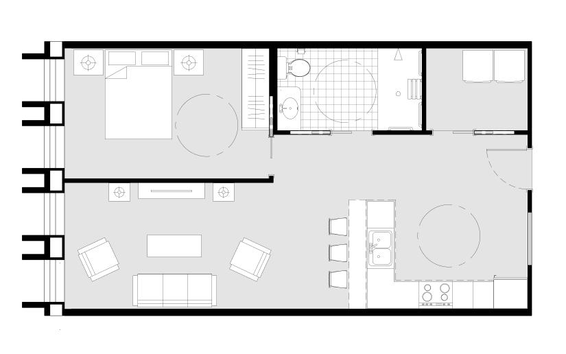 In addition to the need for food and retail, there is an extreme difference in owner-to-rental status due to a lack of affordability for the younger demographic or small unit sizes that offer limited flexibility for growing household sizes. The vacant office building on site is repurposed as a hotel with different lodging typologies for people with different budgets and duration of stay.