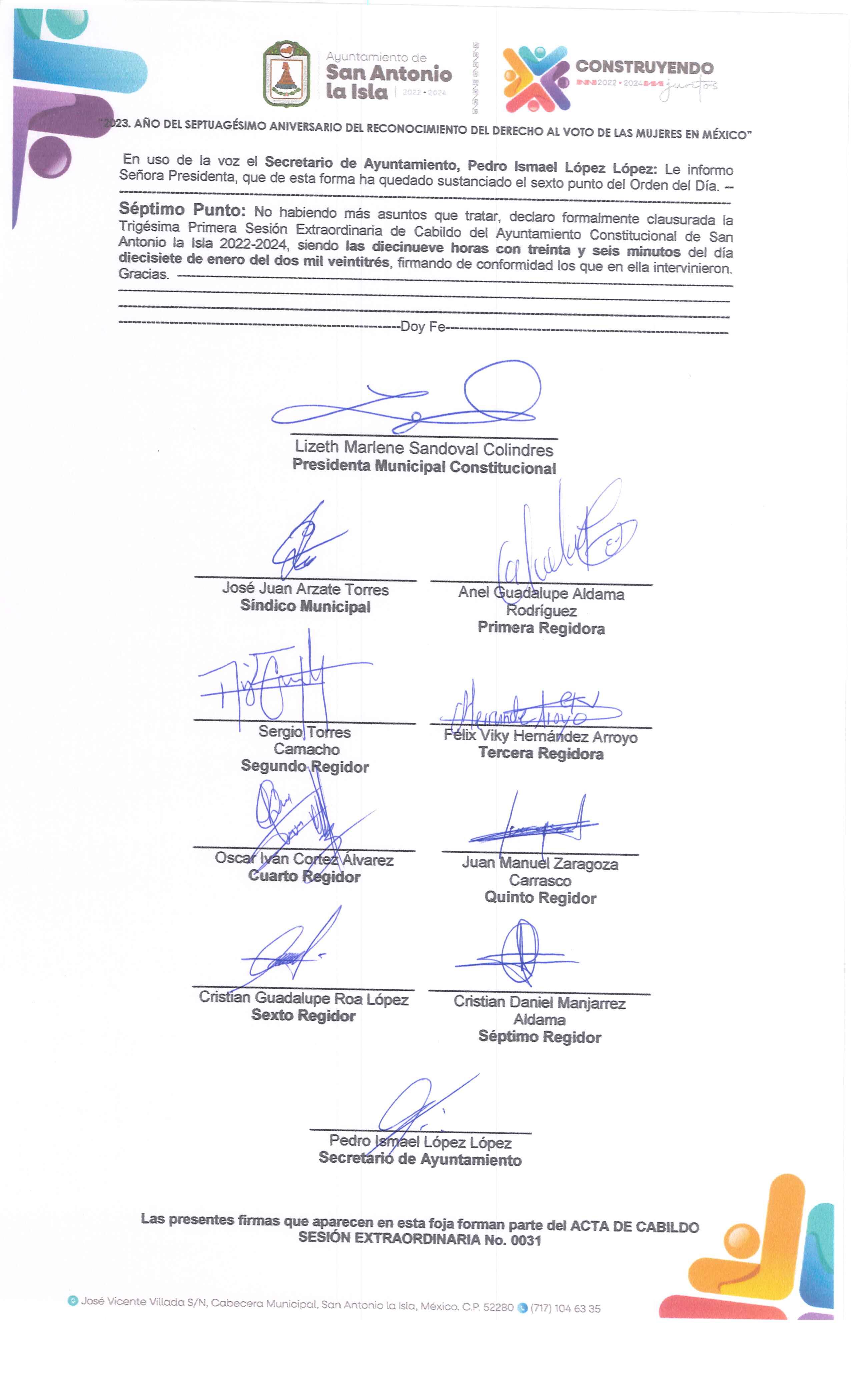 TRIGÉSIMA PRIMER SESIÓN EXTRAORDINARIA DE CABILDO 2023