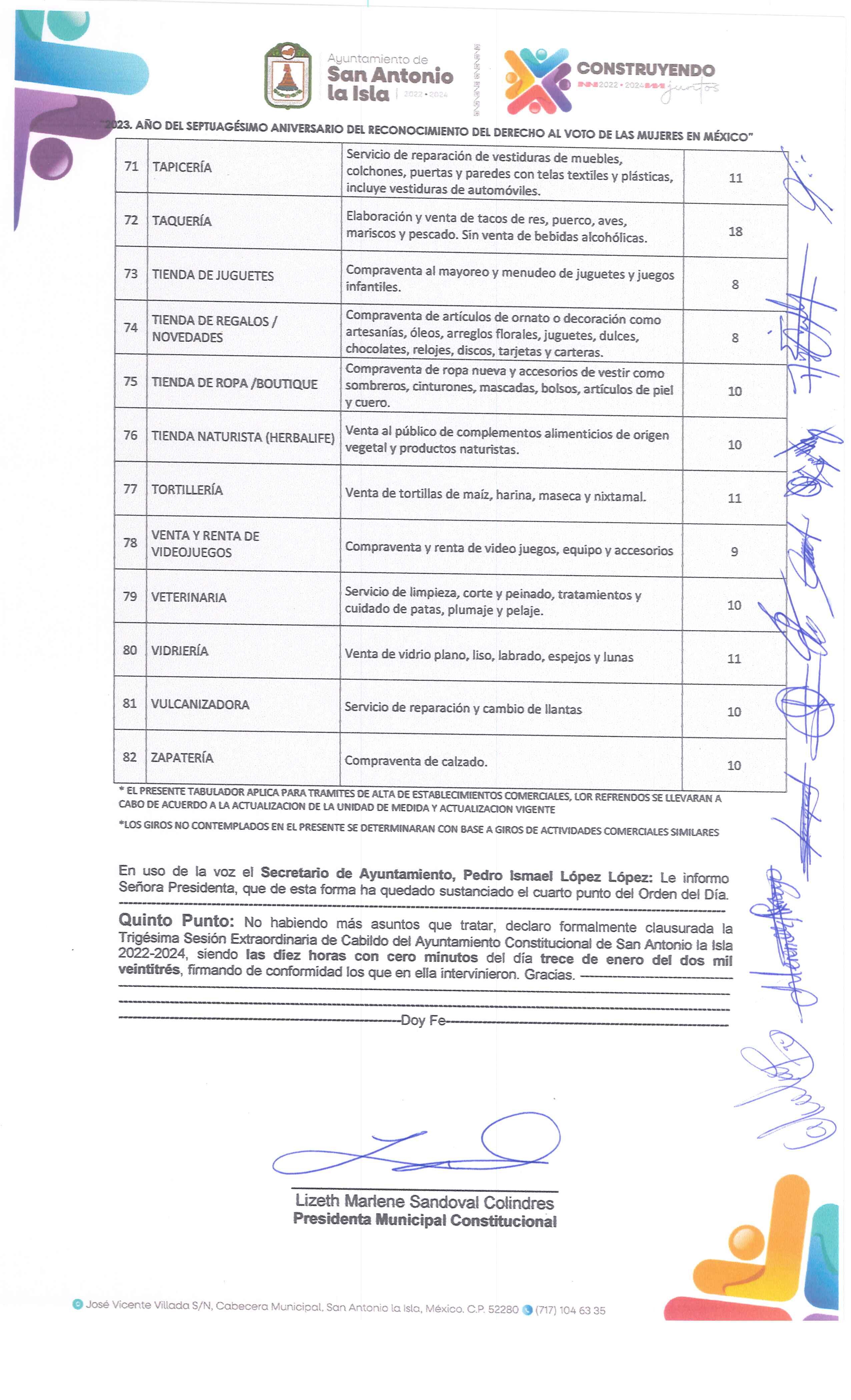 TRIGÉSIMA SESIÓN EXTRAORDINARIA DE CABILDO 2023