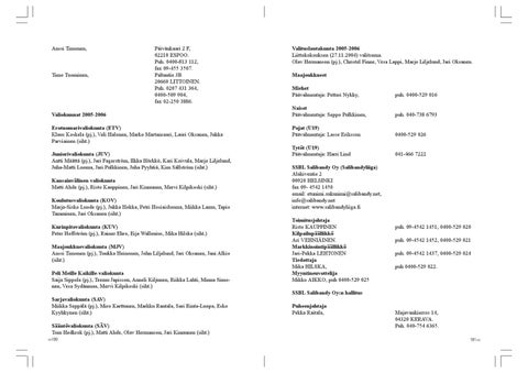 SSBL Salibandy Oy:n hallitus Sarjavaliokunta (SAV) Miikka Seppälä (pj.), Miro Karttunen, Markku Rantala, Sari Rinta-Luopa, Esko Kyyhkynen (siht.) Sääntövaliokunta (SÄV) Tom Hedkrok (pj.), Matti Ahde, Olav Hermanson, Jari Kinnunen (siht.) 190