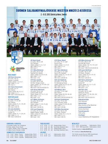 Suomen salibandymaajoukkue miesten MM2012-kisoissa 2.– 9.12. 2012 Zürich ja Bern, Sveitsi