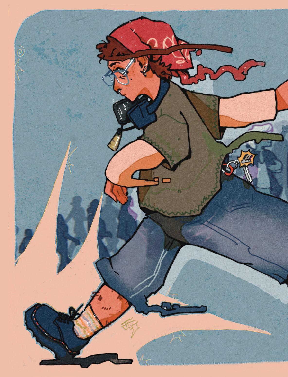 Kia Ora, I'm Jaymee! I am a film, media studies and creative writing student in my final semester at VUW. This piece is about navigating the world in a way that feels authentic to me, something I consider a lot during Pride! I've hidden a bunch of pride flags in my piece, I wonder how many you can spot?