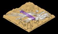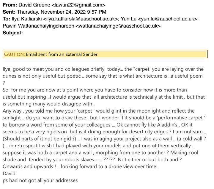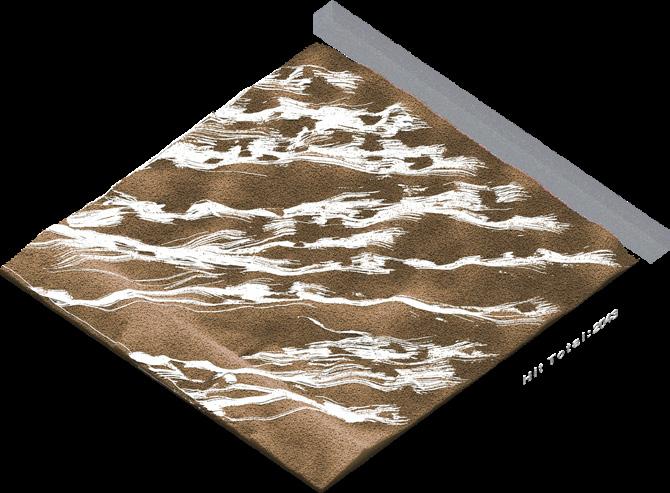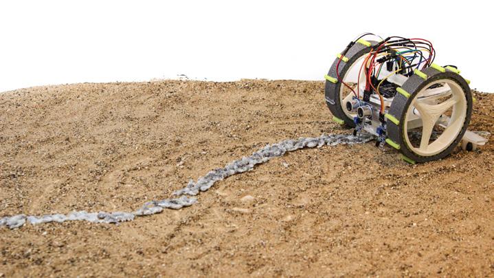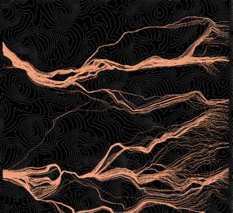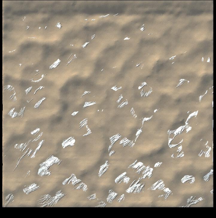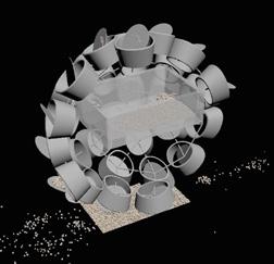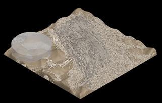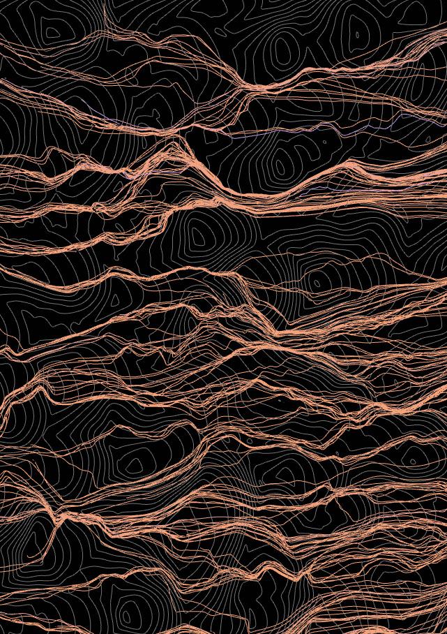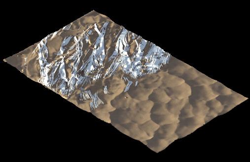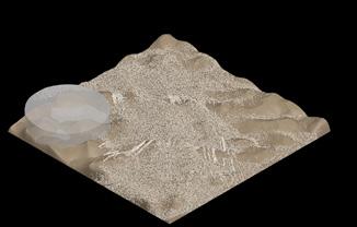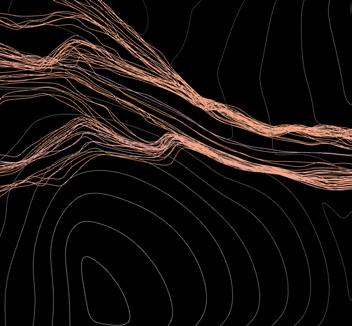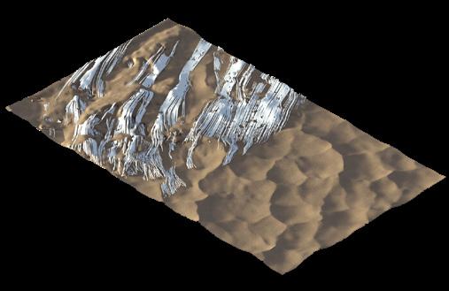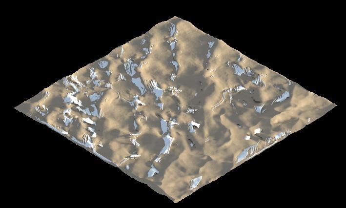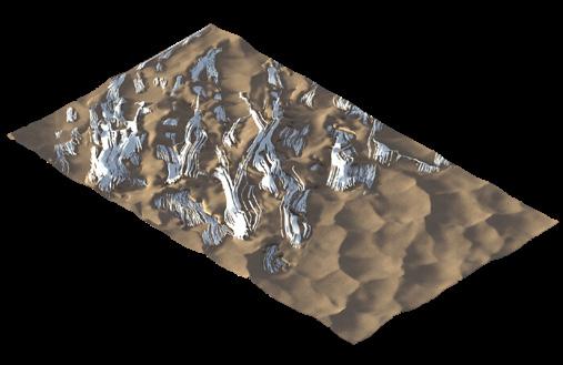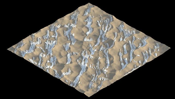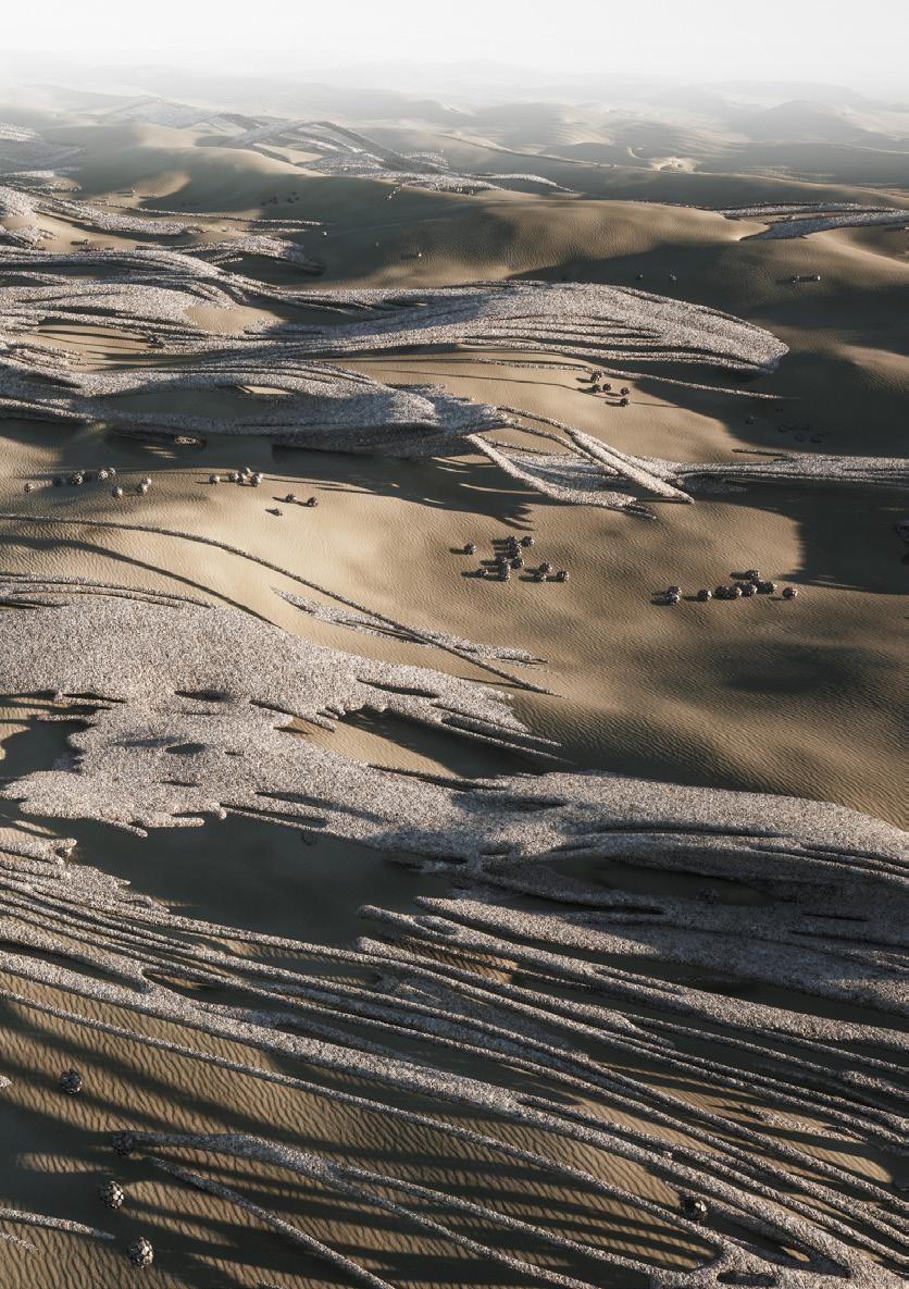 The agents are programmed to be autonomous in the decision making of on-site fabrication, the trajectory of movement, and collaborative production. The network of movement is logistically simulated according to the local data and satellite imagine. This network is constantly changing with the movement of dunes and alterations to the landscape, creating a one-to-one dialogue between agents and the dynamic landscape.