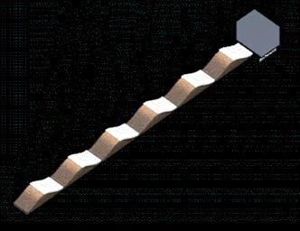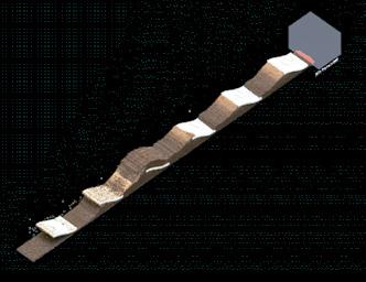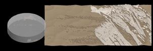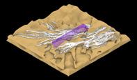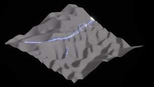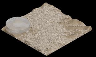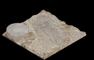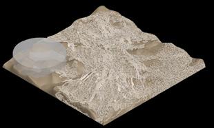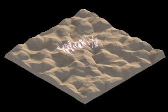 In reality, the fulgurites are grown mainly from the top point where they were struck by lighting. To create the real-like simulation of the fulgurites, the starting point is on the top of the structure and then it grows downward. Moreover, the initial area always has a larger structure than the latter. Using scale settings it is possible to simulate the gradual change in thickness of the fulgurites structure.