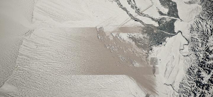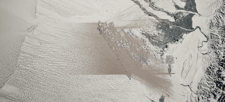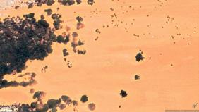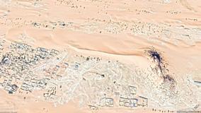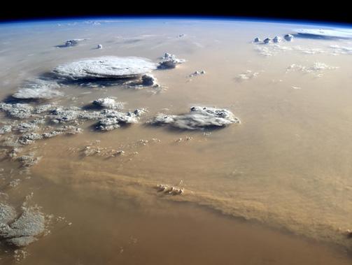 Sand Storm - Satellite Photo - Earth Satellite view; A large portion of sand covers the atmosphere during a sand storm.