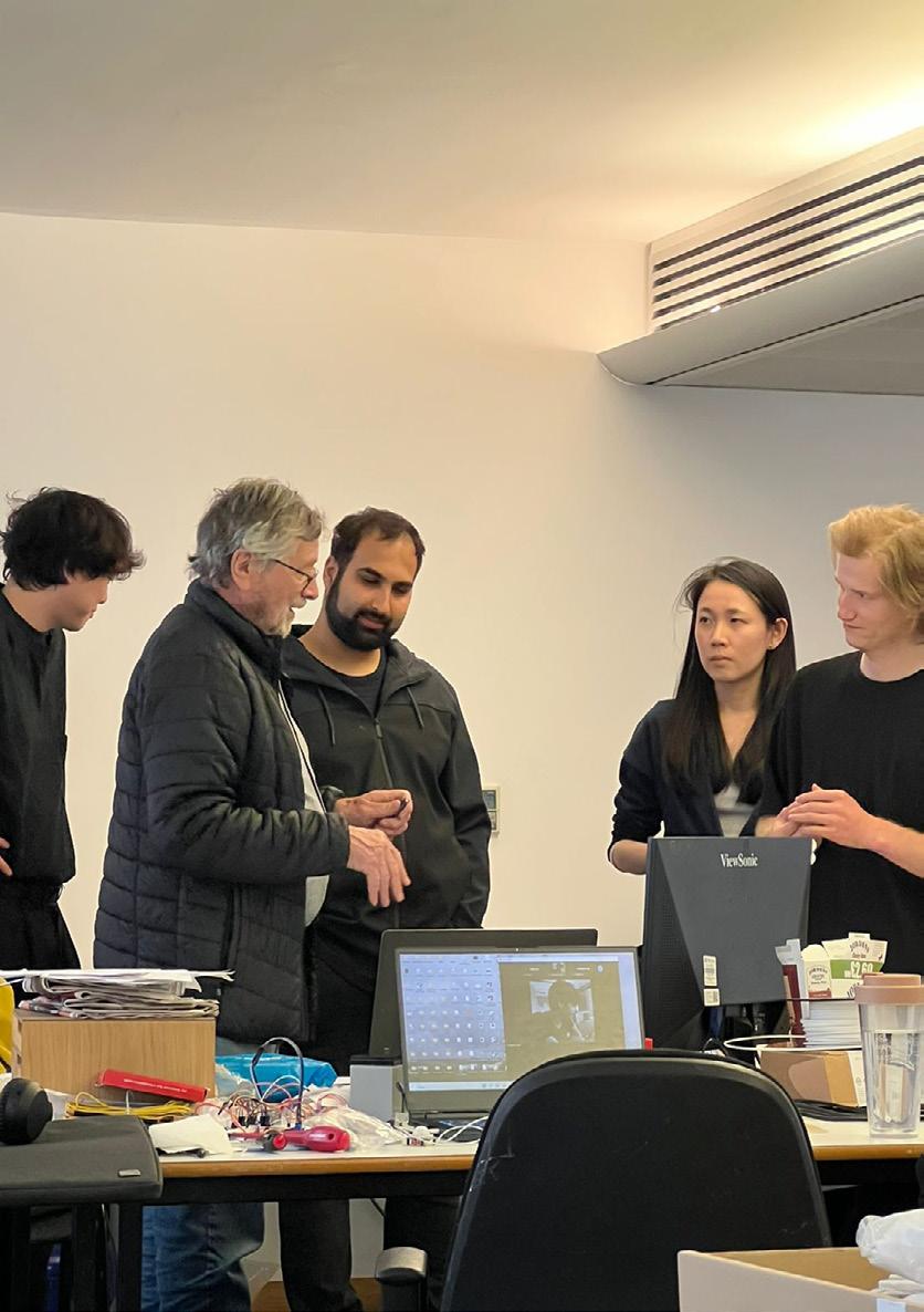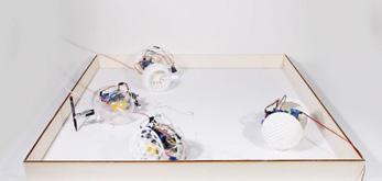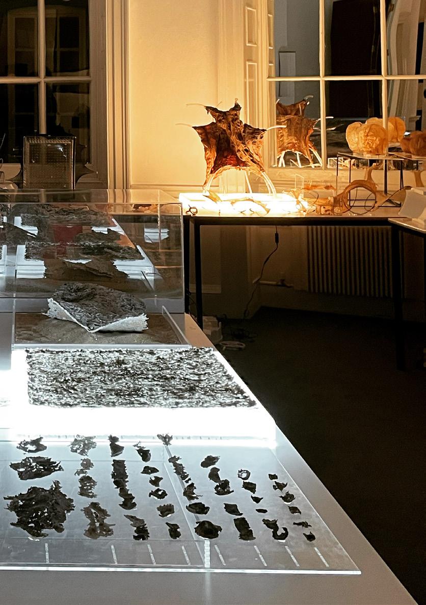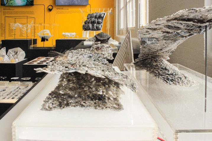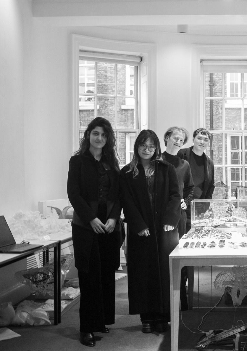 The project was displayed during the annual Architectural Association’s projects review exhibition in June 2022 among other DRL projects of phase 1 and phase 2. Physical models were exhibited, which includes glass models and arduino robots. For the exhibition the models were specially prepared. It involved production of concrete bases and boxes for the glass pieces, and LED stripe lighting in the transparent acrylic base boxes.