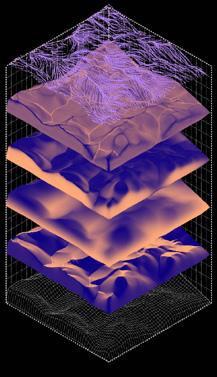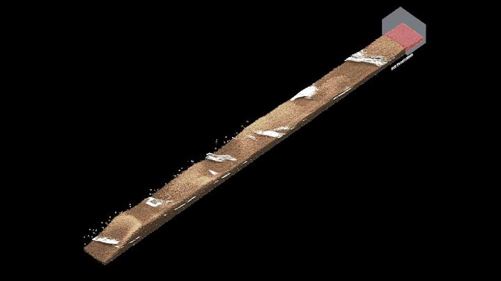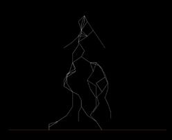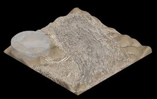 In this step, the main focus of the simulation is how to grow sand particles from the initial path—using the DLA algorithm with specific settings to reproduce the part of the particles, growing from the starting pathway to the outward direction, creating the roughness shape of fulgurites body. Controlling of alignment of particles and noise scale settings can simulate the roughness and bumping skin of the fulgurites simulation, in reality, which is the skin of fulgurite’s outer shell.