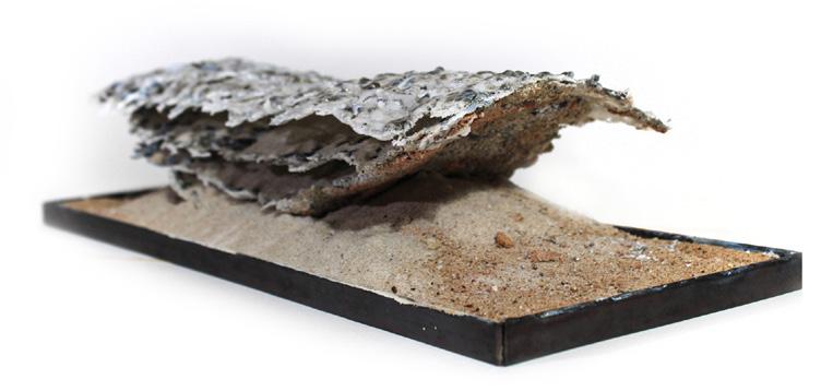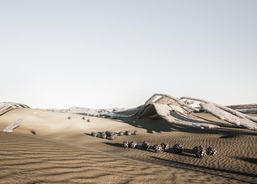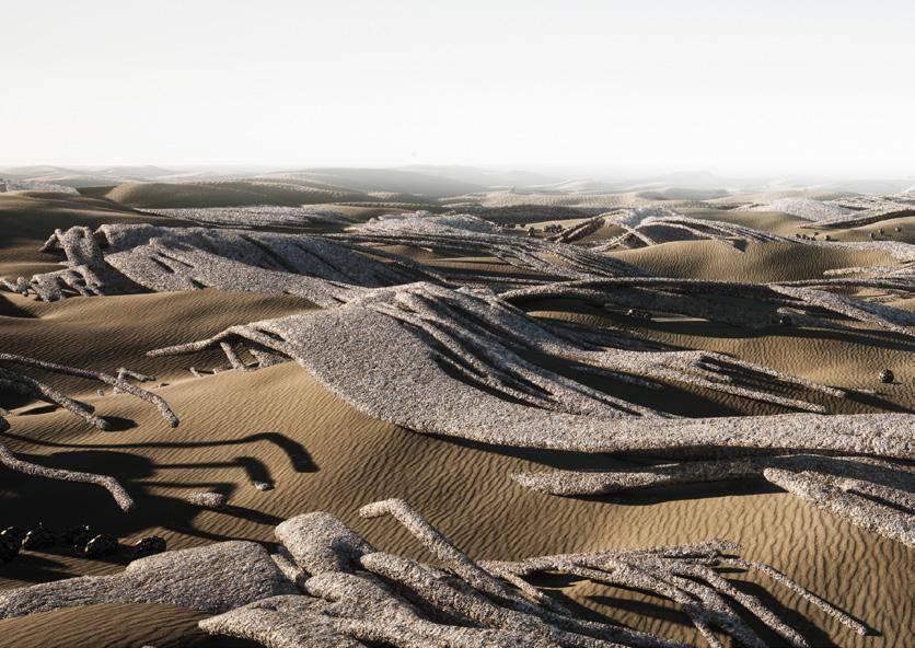 The research addresses the process of desertification by utilising the desert’s onsite materiality and investigating its material contingency. The project focuses on the literal meaning of desertification, the physical spread of a desert over the living ecosystems, be it urban environment, rural vegetation or agricultural lands. The opportunity to bind particles by welding the sand surface was explored by attempting to replicate the emergence of fulgurites, glass formations created by lightning striking the desert surface.