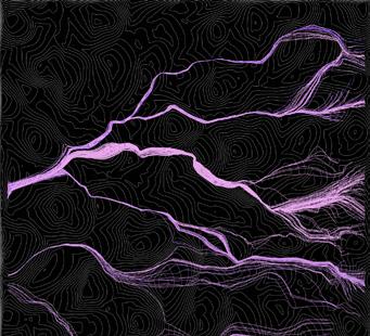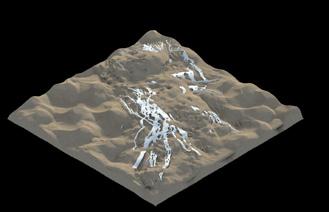 To create the fulgurites simulation the DLA was used. DLA, Diffusion-Limited Aggregation, is a process whereby particles undergo a random walk due to Brownian motion clusters to form aggregates of such particles.