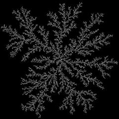 The moving point moves a tiny bit into a randomly chosen direction for each step. After the point is moved, it checks if there is any fixed point within a given distance. If there is no static point close by, the point moves again, choosing a random direction. If, after some steps, the moving point finds a static point within its vicinity. It turns into a static point itself and spawns another moving point.
