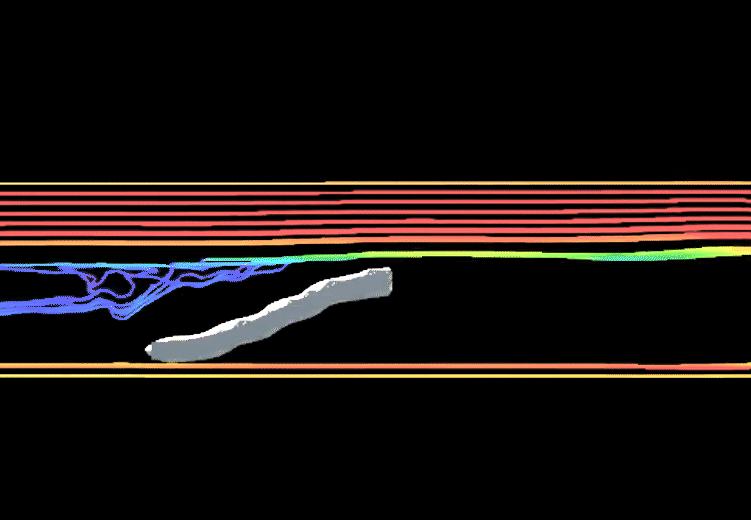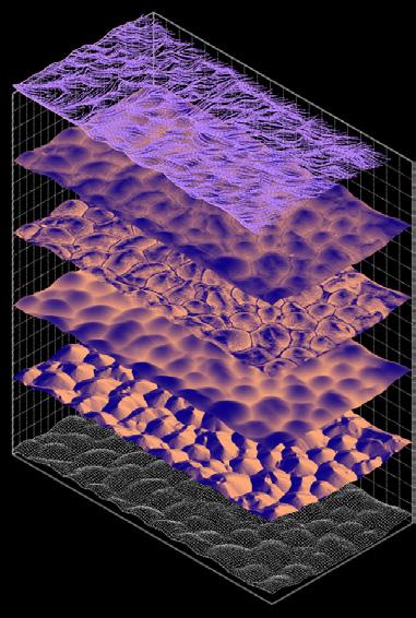 The initial area in these simulations is a linear and circular shape—the growing particles created the roughness of the skin and the thickness of the structure.