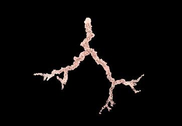 The structure of fulgurites is a branch-like shape. By using the DLA algorithm, the branch formation could be created. The structure grows from the starting point and grows randomly in all directions. In this step, the controllable settings are size, distance, and numbers.