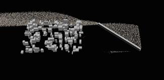 The structure formation and particle aggregation are combined in the final simulation. In each second, the structure grows from the top to the bottom direction, and the particles grow following the structure path.