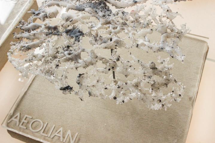 After the DLA simulations the thickness, length, number of branches and direction of the structures are able to be controlled. The results of the simulations were 3d-printed for the physical expertise.
