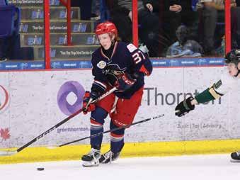 Quinn McCall ’23 playing hockey for the Brooks Bandits of the BCHL.
