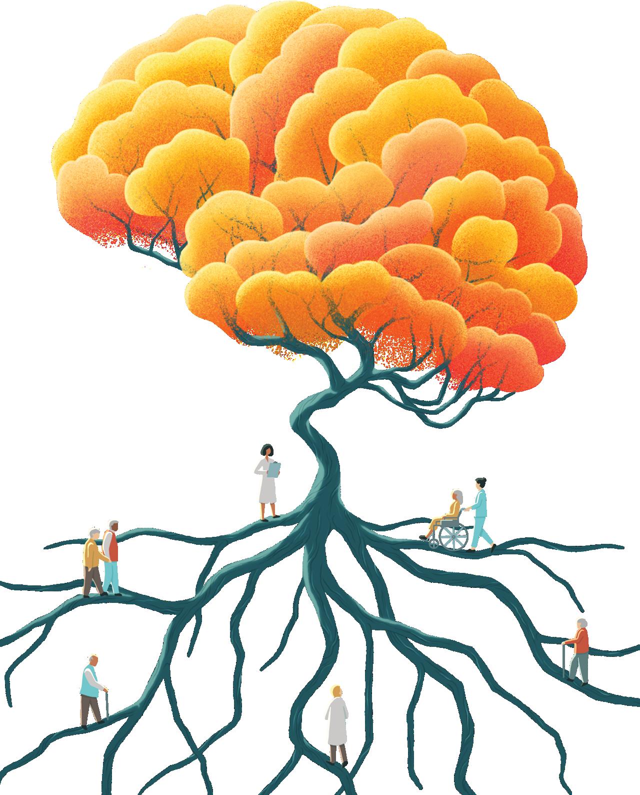 As we continue the Salk Institute’s “Year of Healthy Aging,” this issue focuses on Alzheimer’s disease, a devastating condition that directly affects nearly 7 million people in the United States. In addition, Alzheimer’s indirectly affects 11 million people who provide unpaid care for loved ones with dementia—people like Annie Alessio, who you’ll read about in the feature piece. Annie’s mother, Carol, was diagnosed with Alzheimer’s when Annie was in college. Fourteen years later, after trying every therapeutic approach, Annie lost her mother to the disease.
