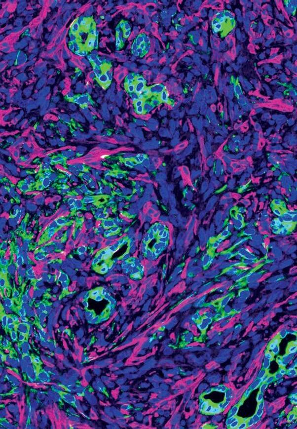 Pancreatic cancer is one of the most devastating cancers, in part because it is so difficult to diagnose. The condition is generally asymptomatic until the later stages of the disease, and by then, for most patients, it is too late to intervene. Pancreatic cancer is also notoriously resistant to therapy, partly because the tumors grow encased in a thick layer of protective tissue.