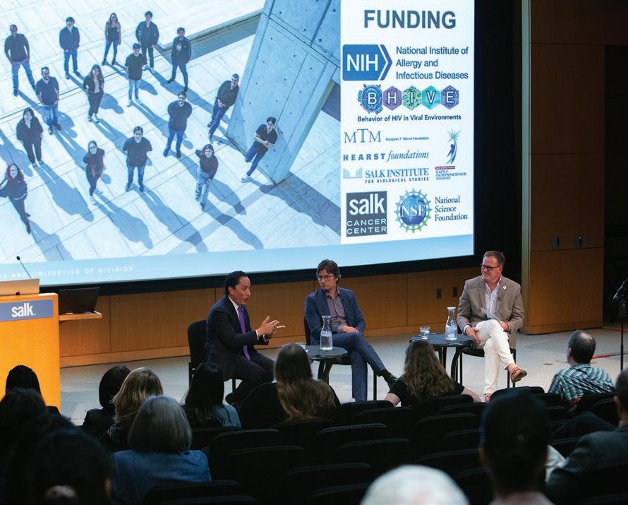 On June 11, Salk held the second annual Salk Science & Justice program: “The Science & (In)Justice of HIV/AIDS.” The event featured San Diego Mayor Todd Gloria and Salk Associate Professor Dmitry Lyumkis, who discussed the intersection of research and social justice in relation to HIV and AIDS, held a Q&A with the audience, and held a closing with Jálin Johnson, director of Salk’s Office of Equity & Inclusion.