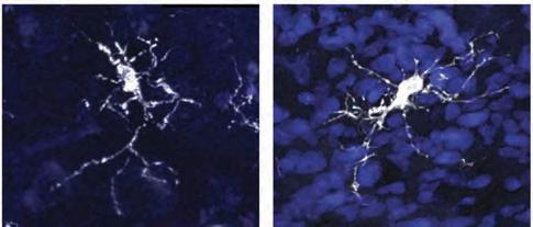 Right: Microglia in the novel organoid model with a human brain-like environment. The cells are almost indistinguishable.