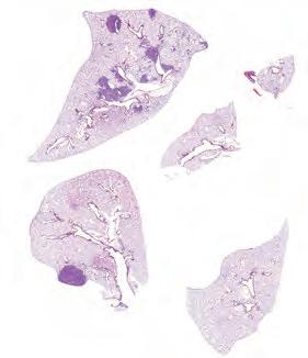 Left: Lung tissue of mice with LKB1-mutated non-small cell lung cancer. Right: Lung tissue after being treated with both trametinib and entinostat showing smaller and fewer tumors.