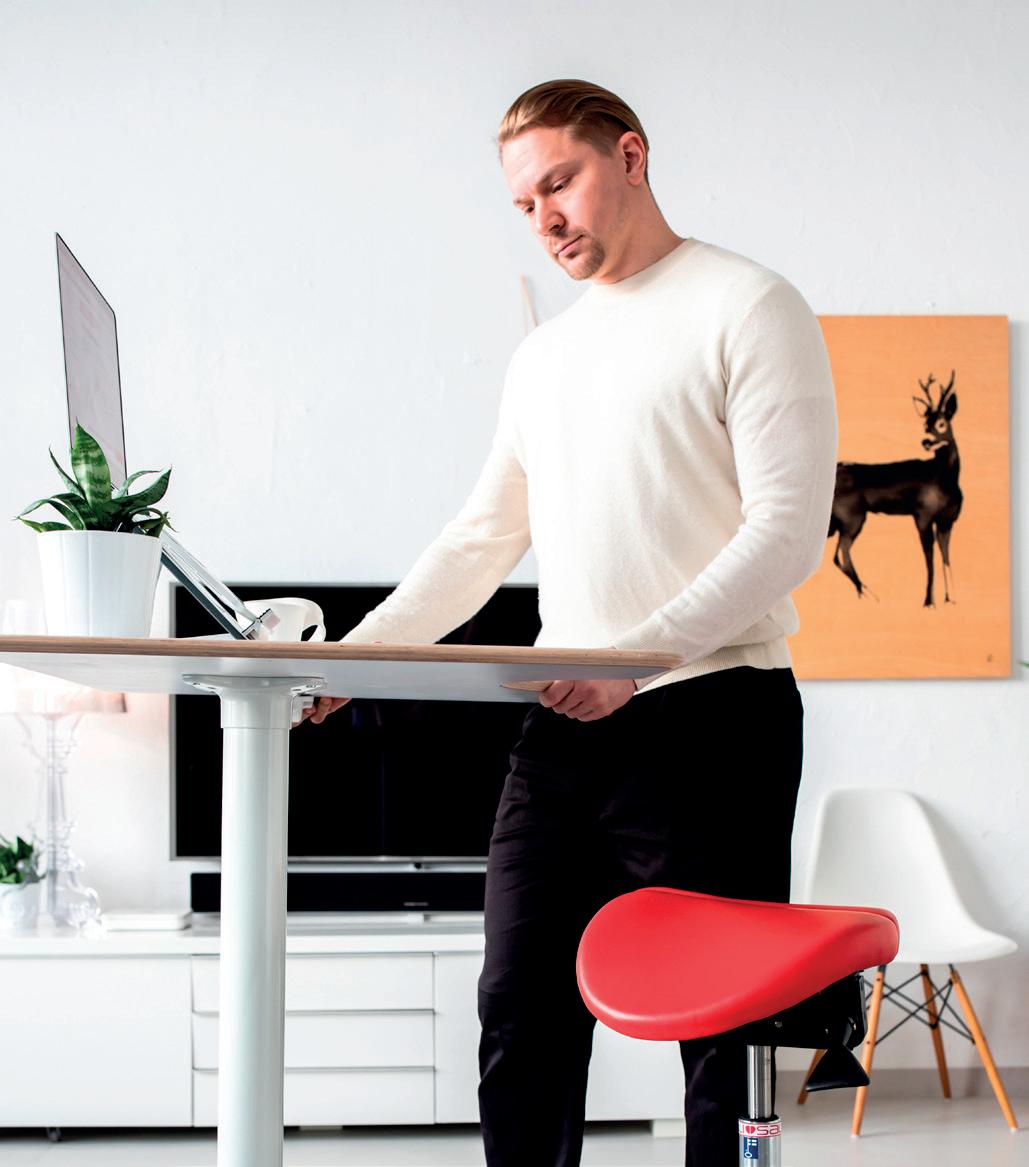 Salli kan levere de vigtigste elementer i hjemmekontoret: den ergonomiske sadelstol og højdejusterbare bord.