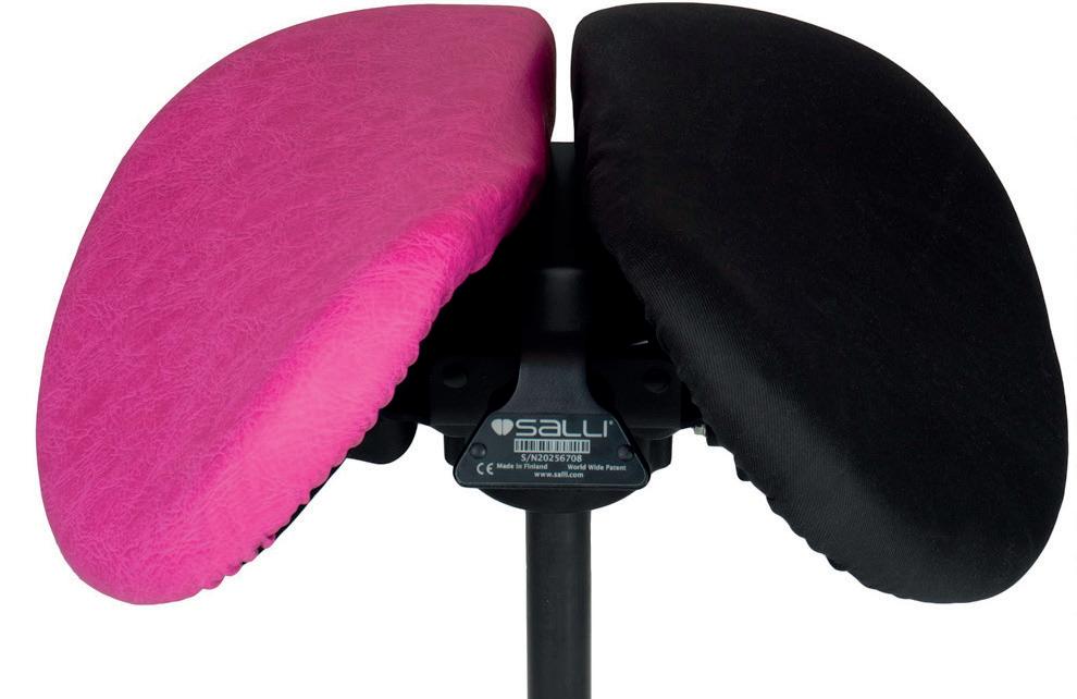 Når man sidder på en todelt stol er presset på det bløde væv lavere og vi sidder mere komfortabelt i, en afbalanceret stilling. Cirkulationen er også uforstyrret. I nogle Salli modeller kan afstanden mellem sæderne justeres. Vi anbefaler bukser med vidde og at du trækker op i buksebenene, når du sidder ned for at stoffet er luftigt under bækkenet. Så får du mest gavn af stolen.