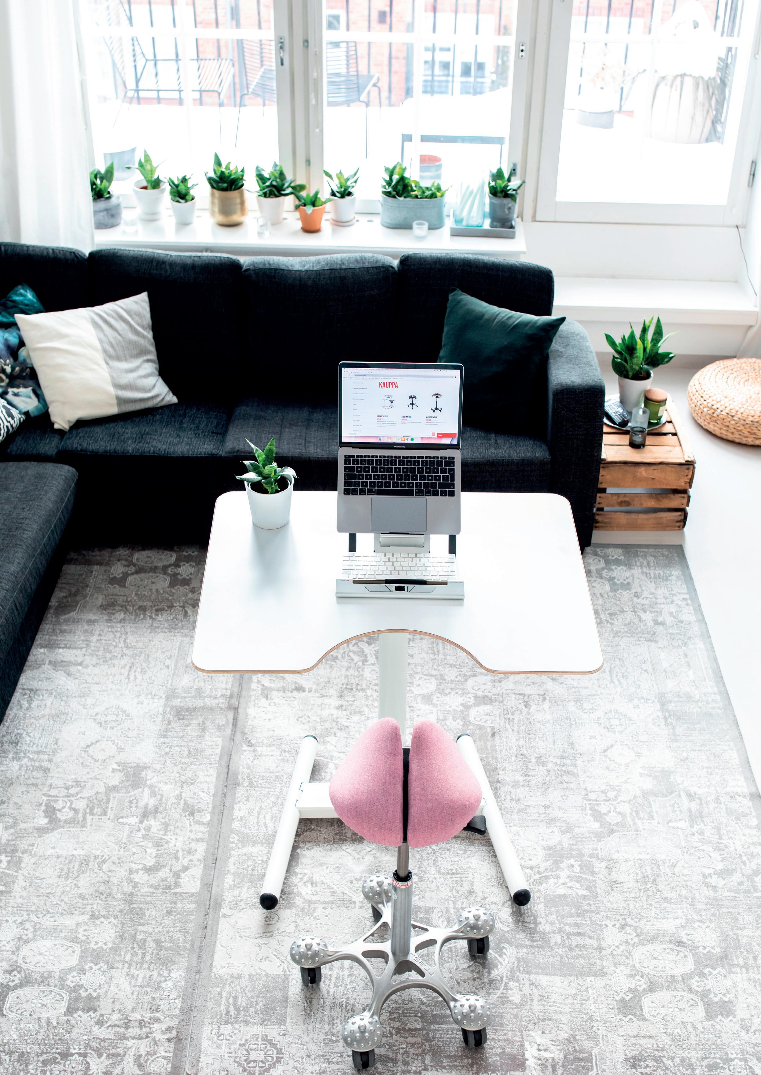 Salli kan gi de viktigste elementene på hjemmekontoret: den ergonomiske sadelstolen og høydejusterbart bord.