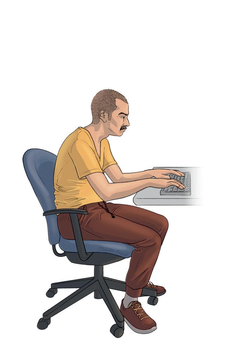 Den dårlig holdningen som tradisjonelle stoler forårsaker, strekker og stresser ryggmusklene og gjør dem såre. Fasettleddene i ryggen er åpen, noe som øker trykket på mellomvirvelskiven med 30%. En ryggstøtte hjelper ikke, fordi 90 graders hoftevinkel gjør at man ikke klarer å få bekken i balanse.
