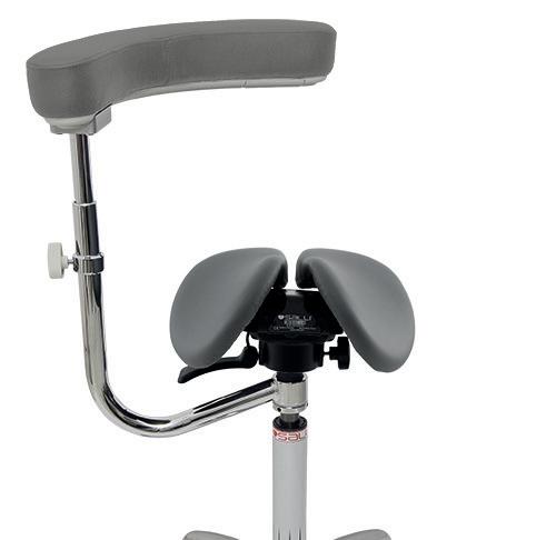 På en todelt sadelstol er ryggsøylen i samme stilling som i stående, og den nedre lordosen kan opprettholdes.