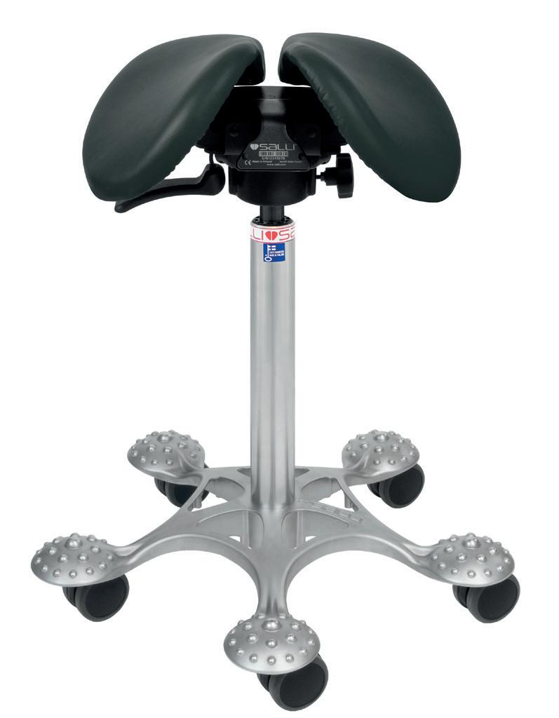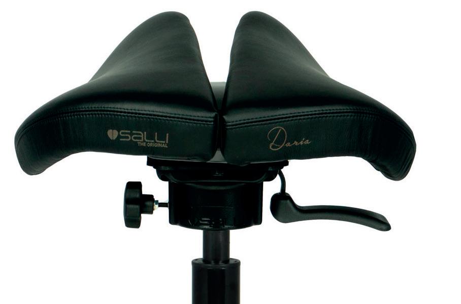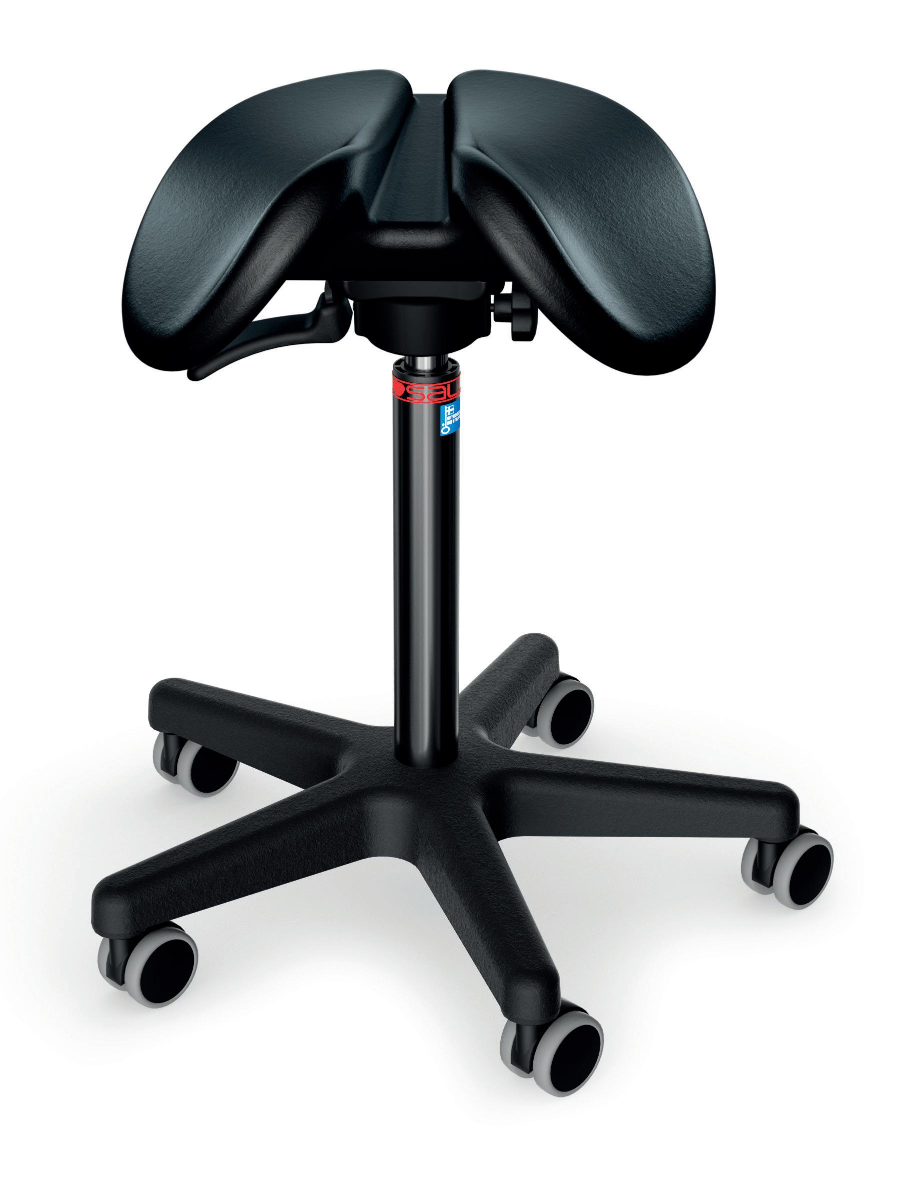 På en Salli Sadelstol er det enkelt å forflytte seg, mens den 135 graders vinkelen i hofte og knær garanterer en god sirkulasjon. Mellomrommet i stolen gjør at man kan opprettholde en god holdning hele dagen. Det er heller ingen ukomfortabelt trykk på underlivet.