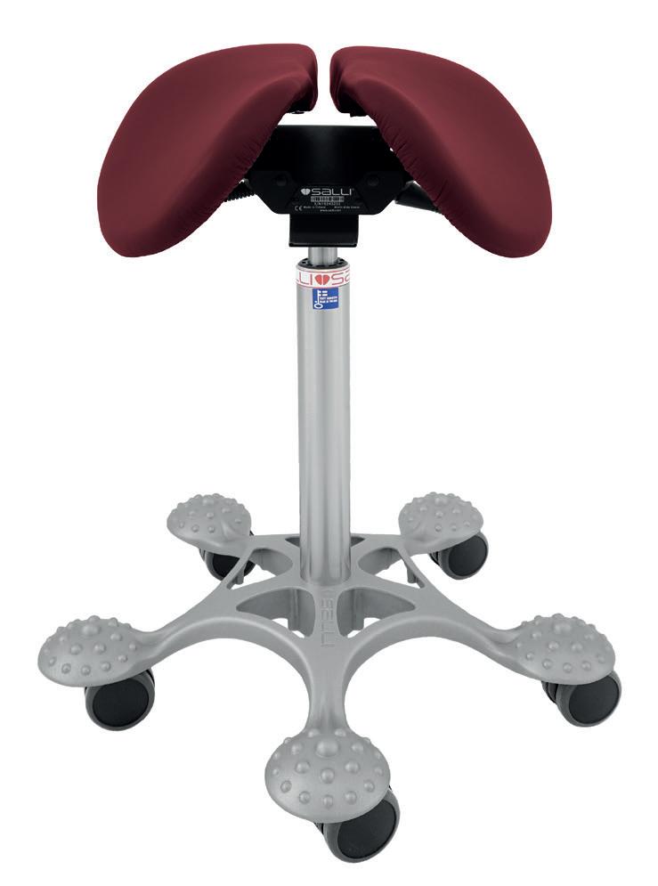 Når man sitter på en todelt sadelstol er trykket på sittebeina. Som et resultat er det mindre trykk på bløtvev og det er grunnen til at vi sitter mer komfortabelt i en balansert stilling. Sirkulasjonen forblir også uforstyrret. Vi anbefaler løse bukser og løfte buksen før man setter seg for at stoffet ikke skal stramme under bekkenet. På denne måten vil du få mer utbytte av stolen.