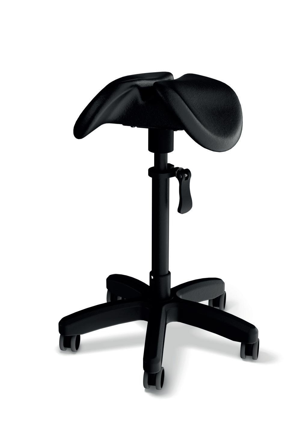 En sadelstol med två-delad sits med fast sitsvidd och lutningsmekanism. Tiltande endels sadelstol. Rekommenderas endast för kvinnor och för deltidsanvändning.