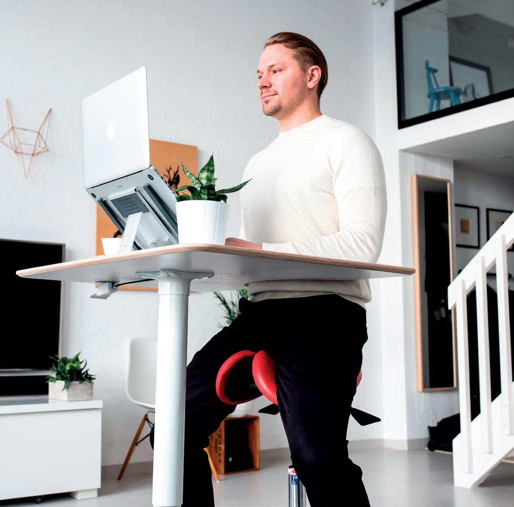 Salli kan ge de viktigaste delarna av hemmakontoret: den ergonomiska sadelstolen och det höj- och sänkbara bordet.