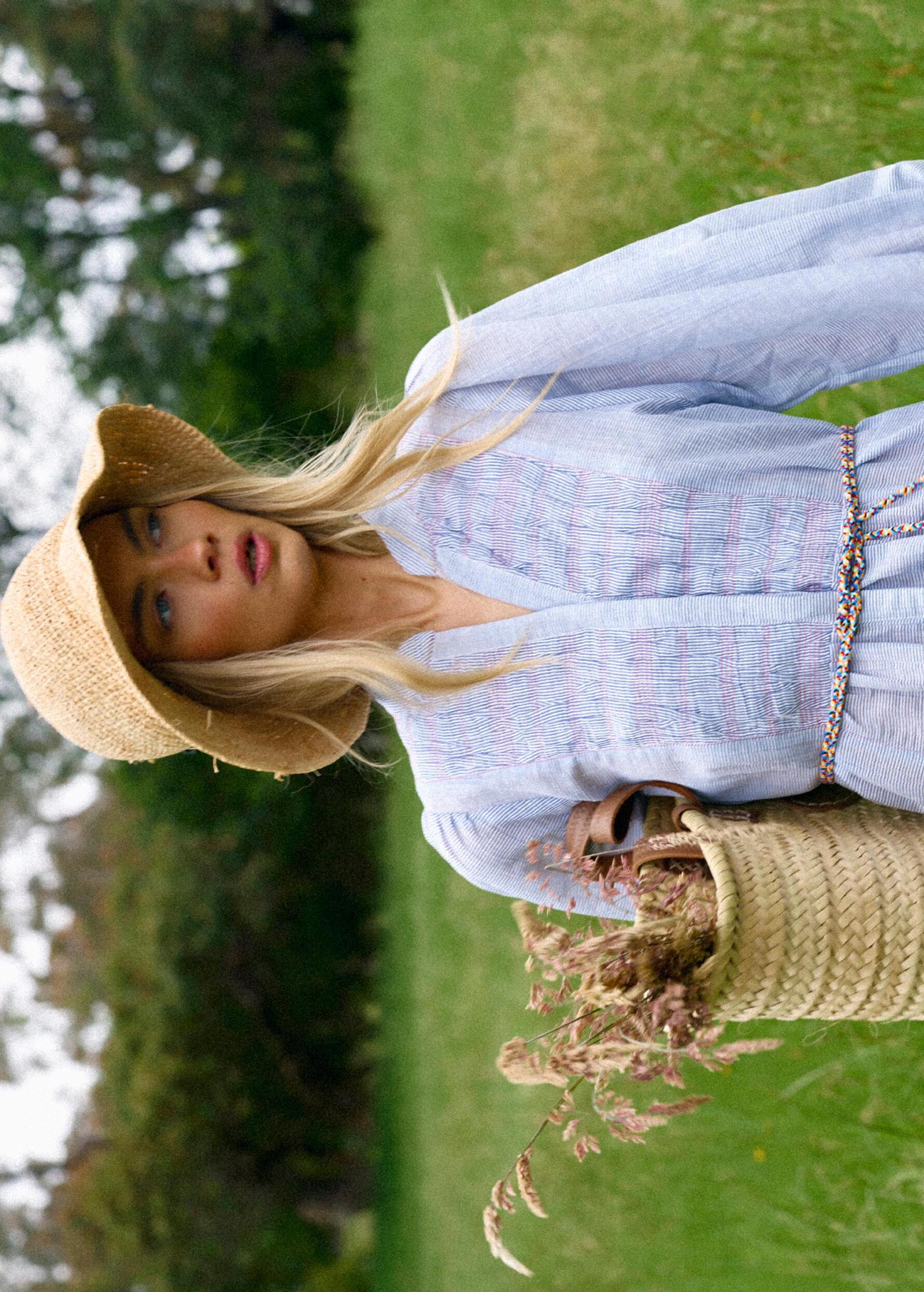 8322 rubi dress. denim spot options. sea shell + chalk bandana