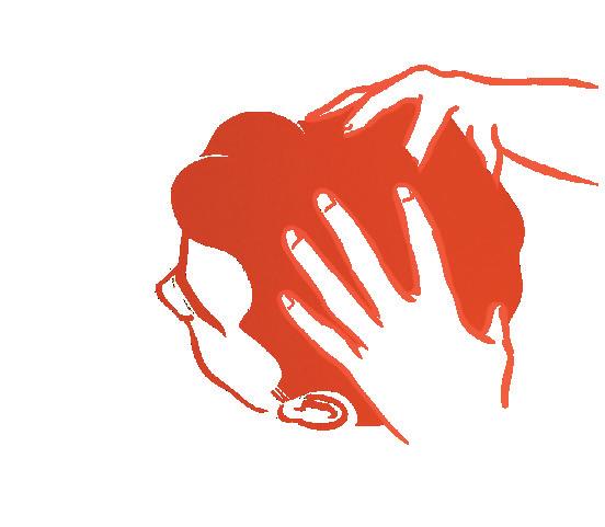 Du bout des doigts des deux mains ouvertes, exercer de petits mouvements à partir des racines des cheveux vers le sommet de la tête. Ensuite, masser la partie arrière par mouvements circulaires et ascendants avec une main tout en soutenant la partie supérieure de la tête avec l’autre main.
