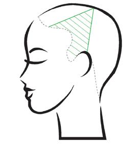 Moving to the other side of head, take a ¼-inch slight diagonal back section. Tease and apply Formula 1. Once middle segment is complete, move to the top mohawk segment.