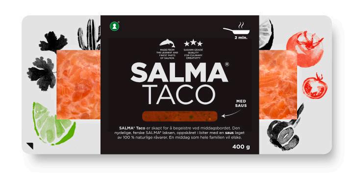 3. Når alt tilbehøret er på plass steker du fisken. Stek SALMA® laksen i panna i 2 minutter. Ha deretter i SALMA® TACO sausen og stek videre i 20 sekunder.