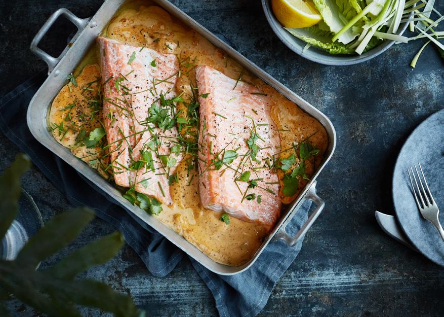 2. Skjær SALMA® i porsjonsstykker og legg dem i en ildfast form.