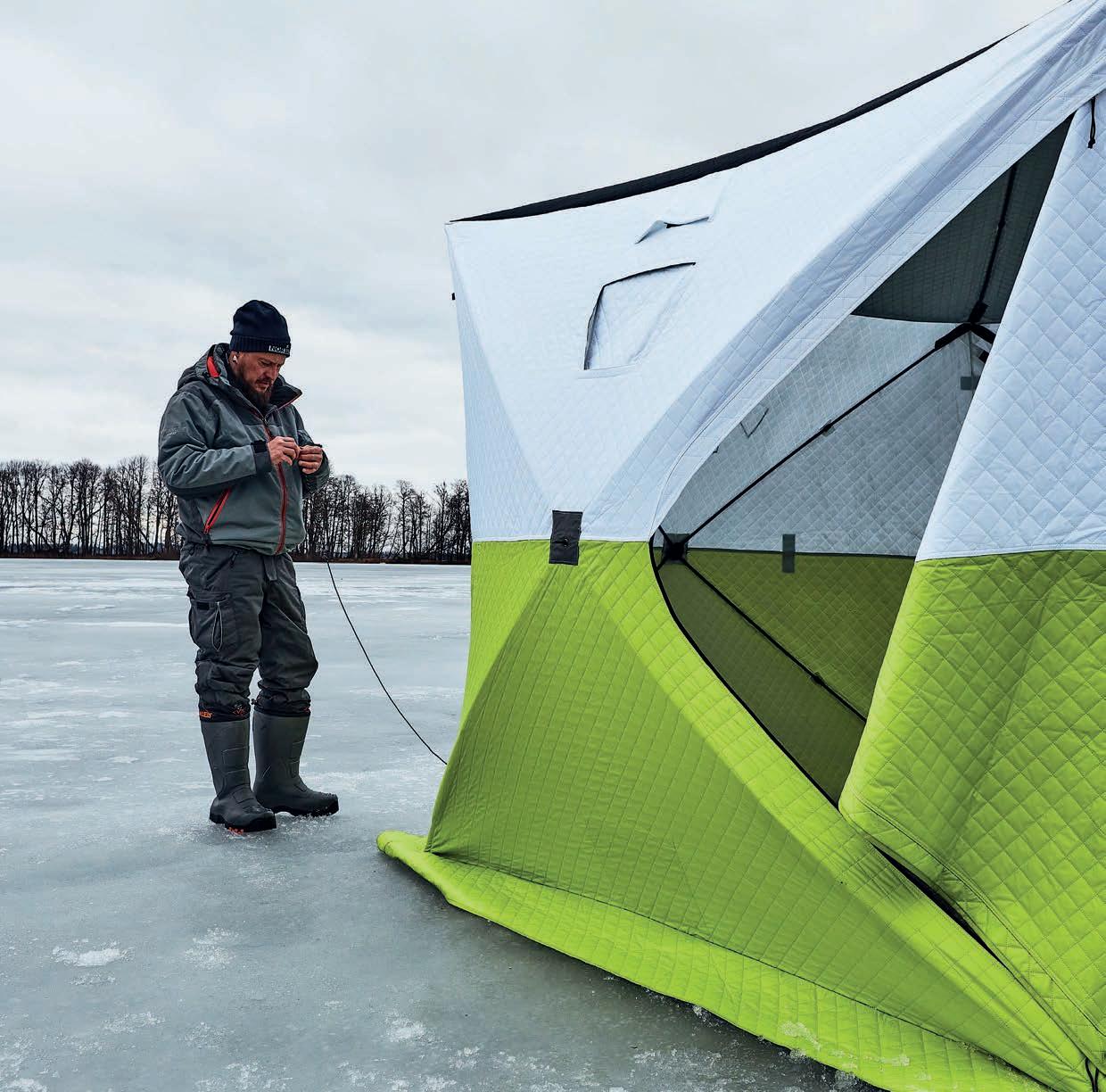 Se i au o a ic, or a le ice fi hing en which can e erec ed ju in econd . ura le and e i le fi ergla fra e wi h uick erec u rella y e y e . ce anchor for fa ening en o he ice are included. ind and wa er roof a erial will ro ec fro ou er ele en and addi ional en ila ion window ro ide air ow i nece ary.