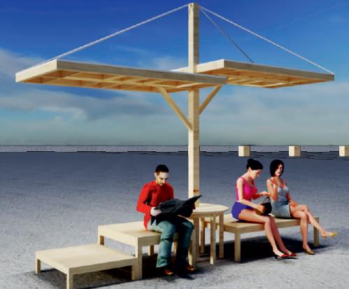 The design is solar Energy equipped street furniture to suit today’s requirement of electronic equipment usages amongst youngsters and office going people, the main focus of the design is to provide seatng arrangement with solar lightng & power points for charging. The above solar panel acts as a shading device as well as power genera on.